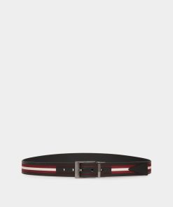 Bally Men’s Shiffie 35mm Reversible Belt In Red And White Fabric And Black Leather | Multicolor