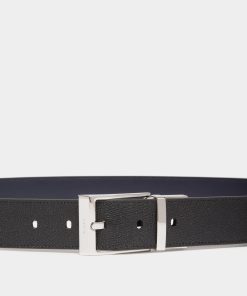 This Shiffie 35 mm belt in grained black and smooth navy blue leather features a reversible and adjustable design with a polished palladium-hue buckle at the front.