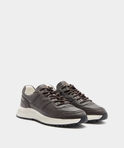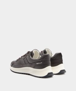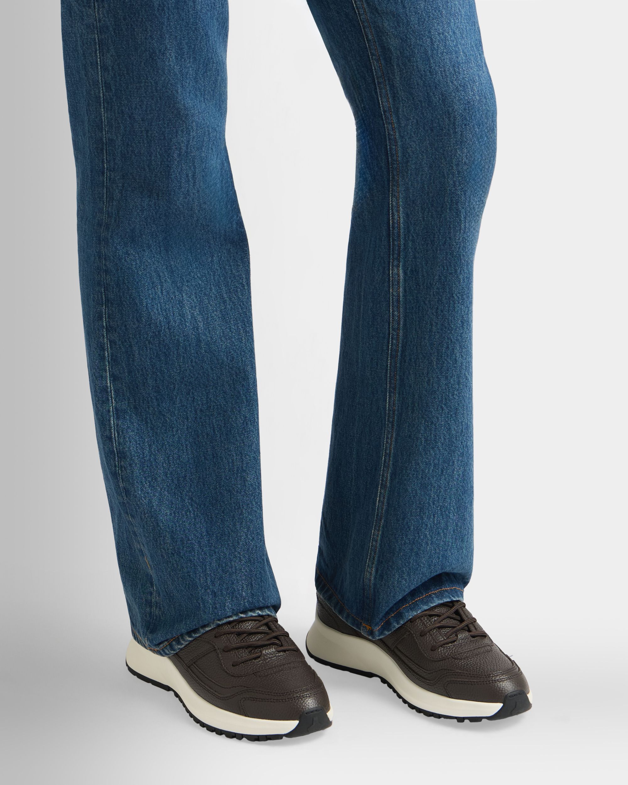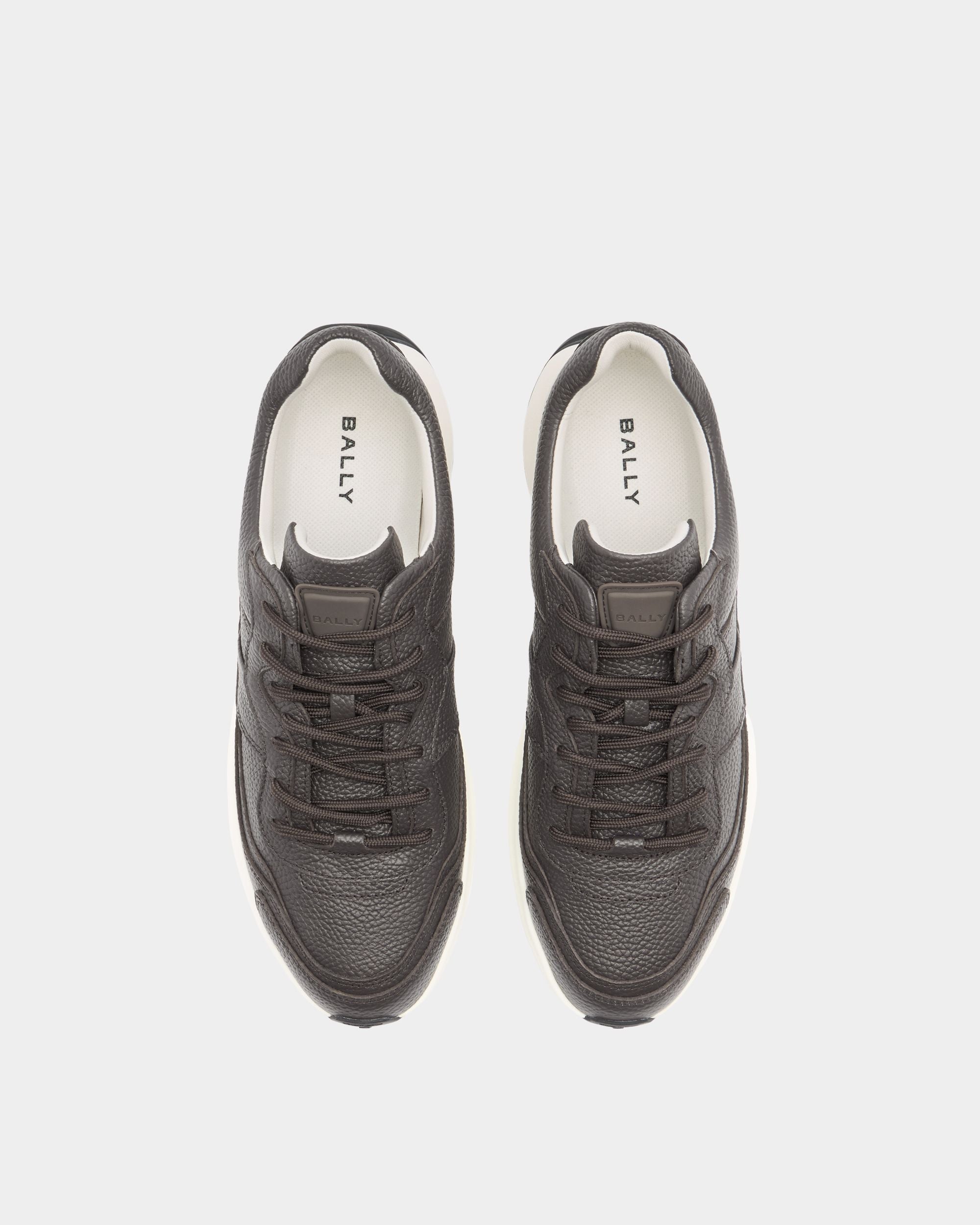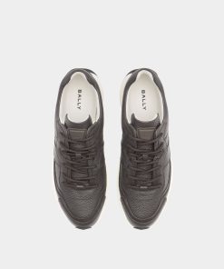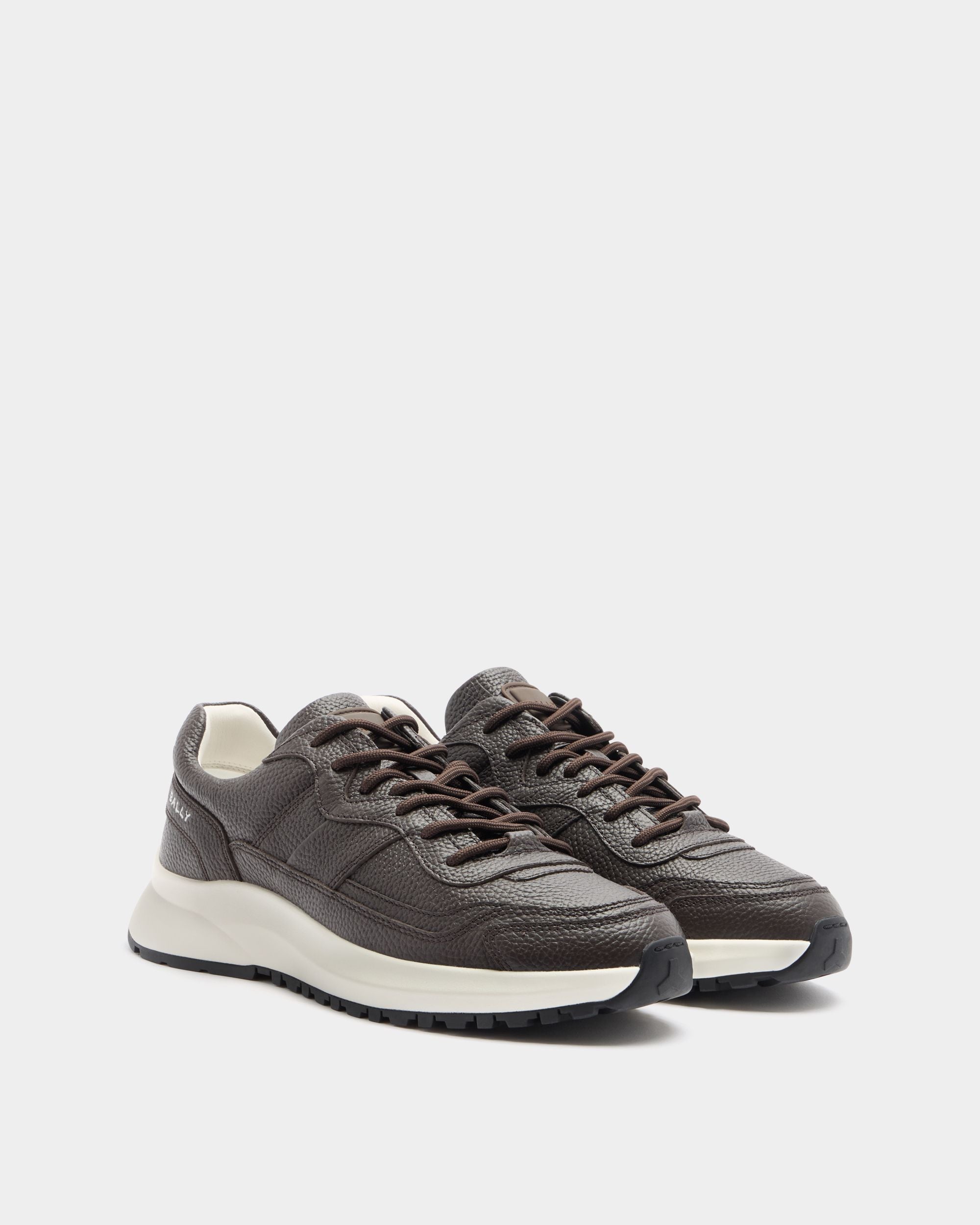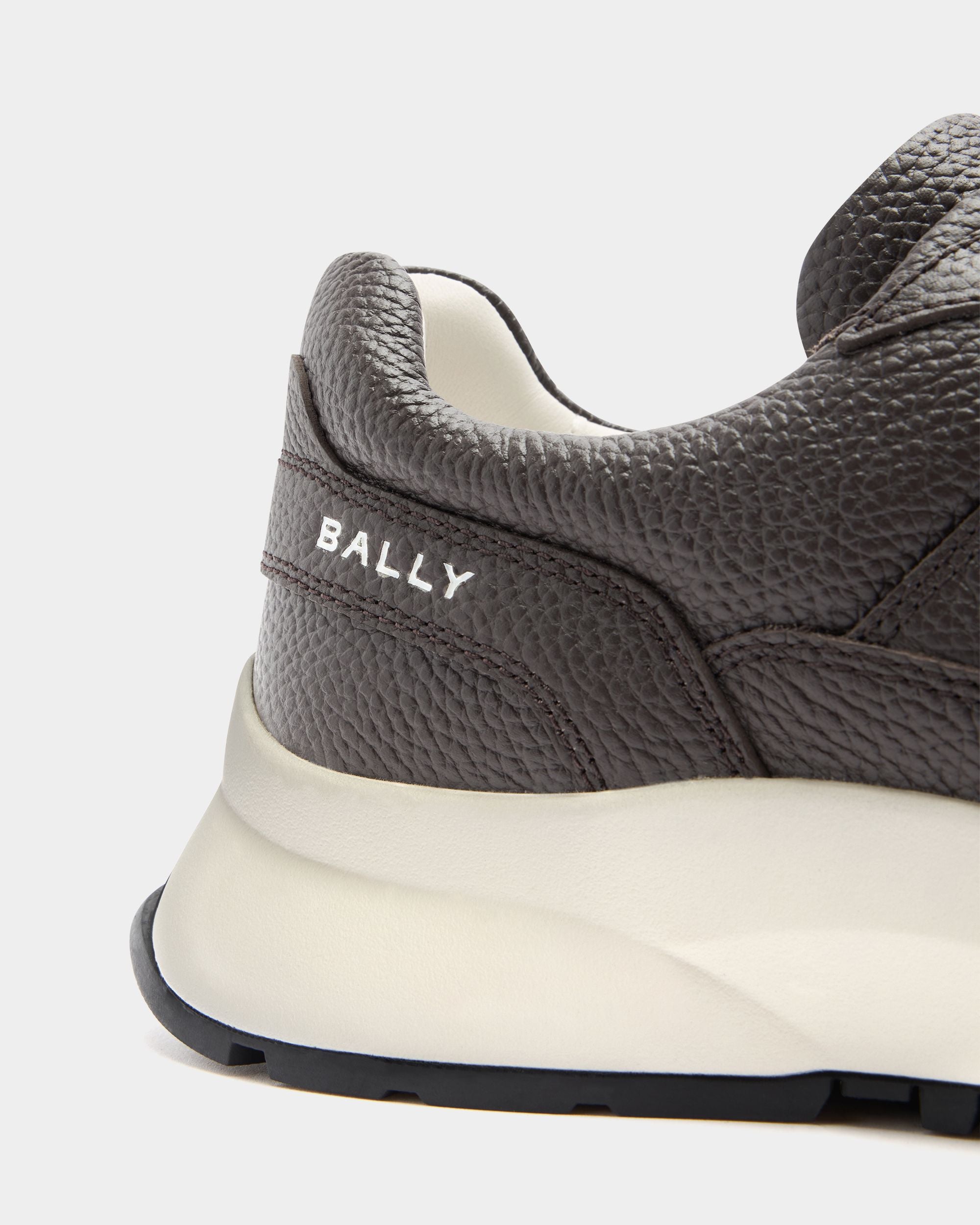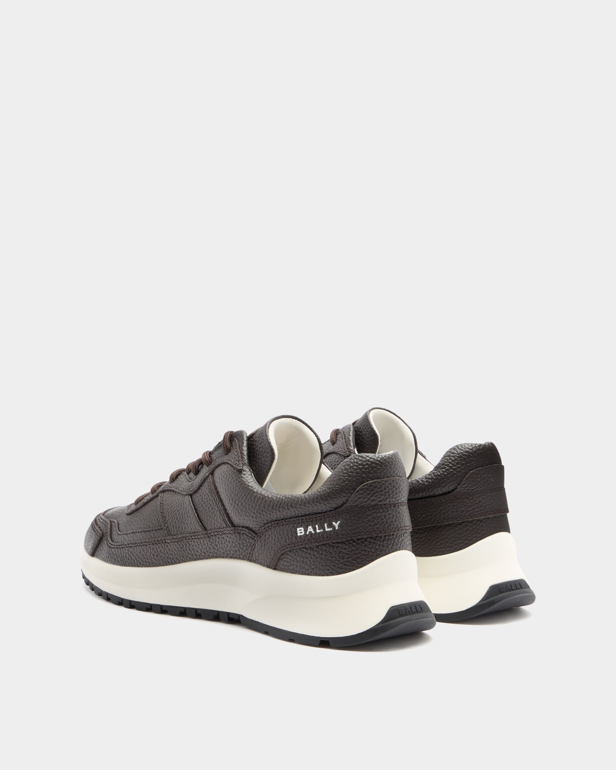 This Ebano leather Outline sneaker is characterized by a grained finish and a chunky yet lightweight running sole for all-terrain grip. The debossed Bally logo on the tongue and the subtle tonal Ribbon motif at the side create an iconic note. Round laces complete the look.