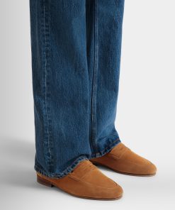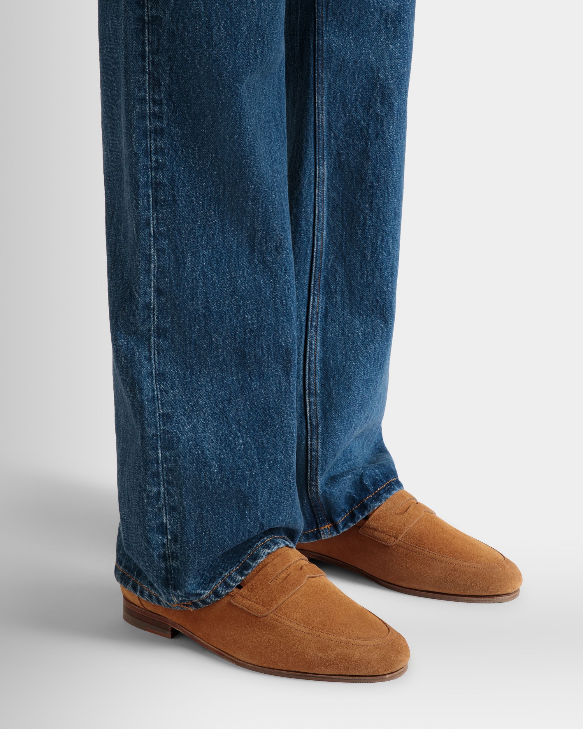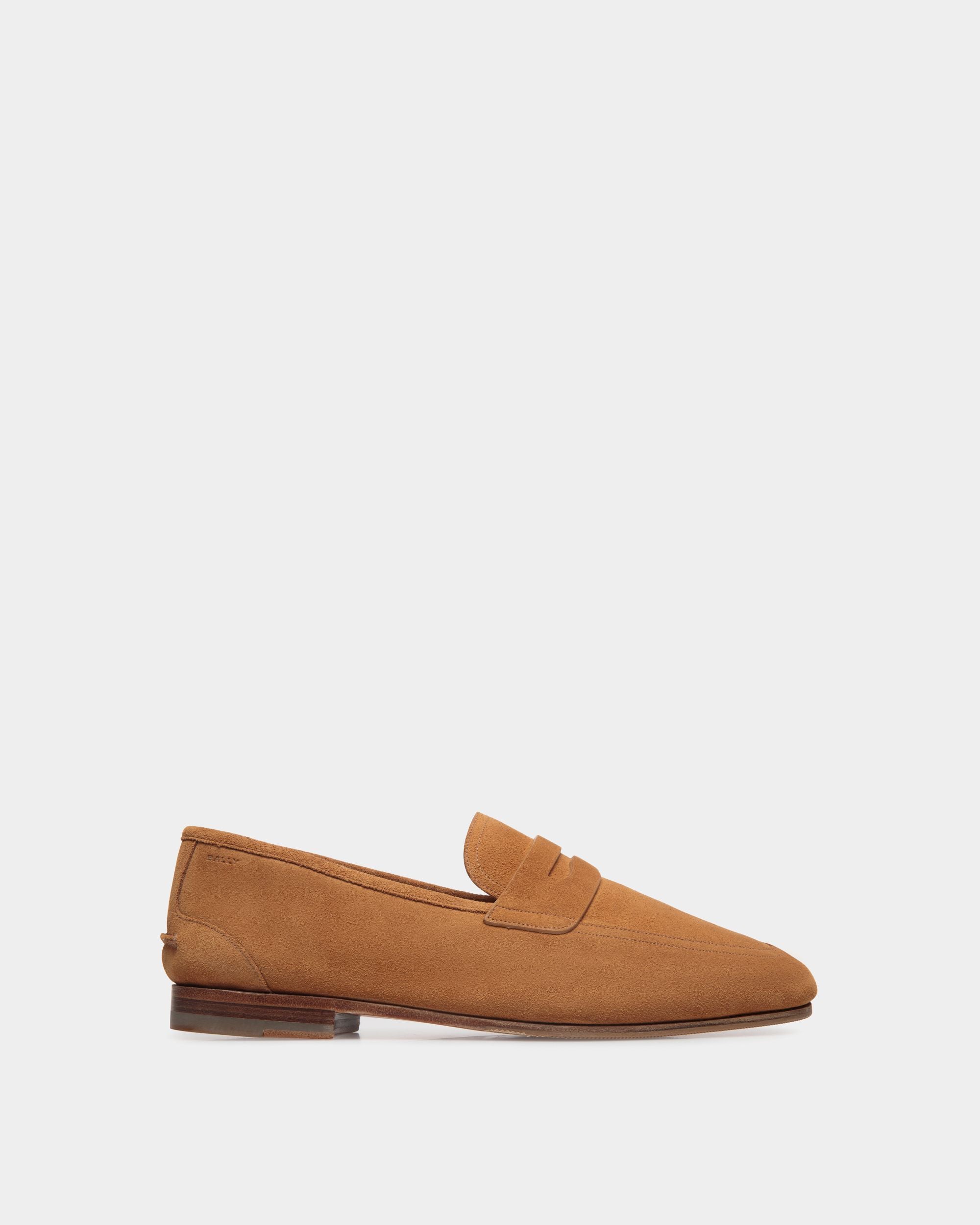 Light as a feather, this essential Plume penny loafer features an upper in brown suede. The flat leather sole with rubber inserts promises comfort and flexibility.