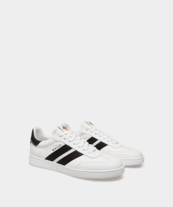 This Retro Crest sneaker in white grained leather is characterized by a sleek slip-on design with tonal elasticated laces set between the minimalist eyestay. A Bally Crest on the tongue and a debossed logo ensure an iconic note.