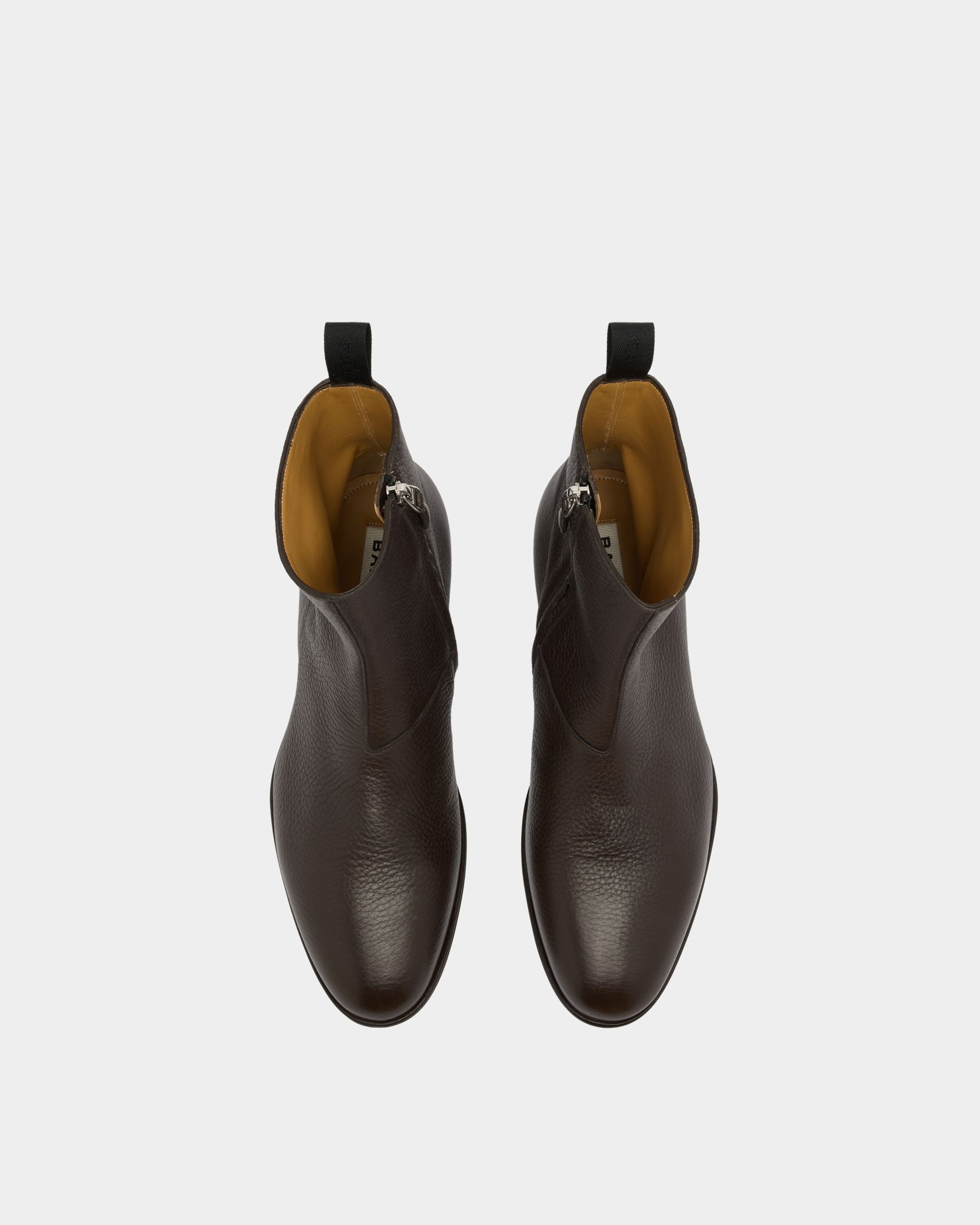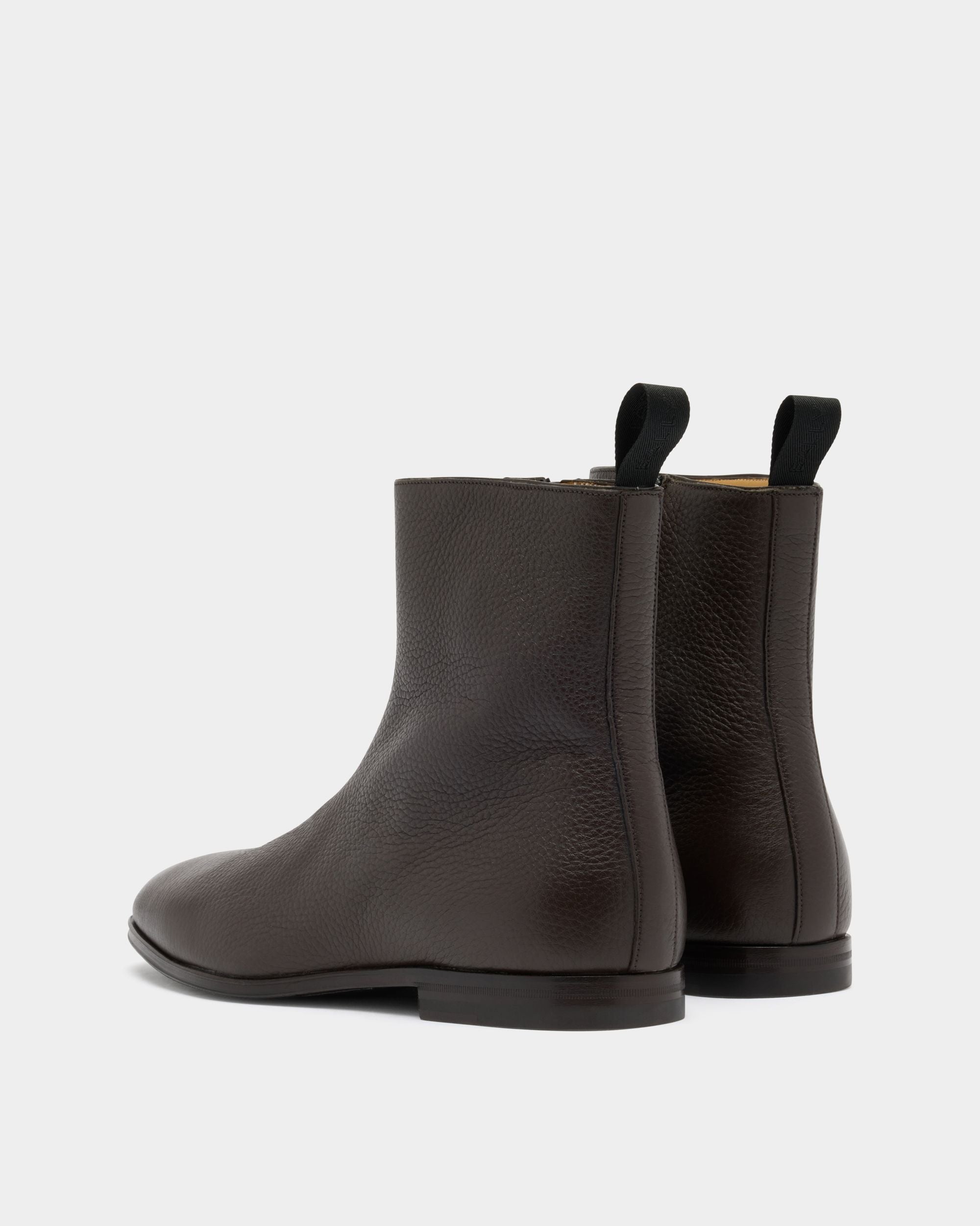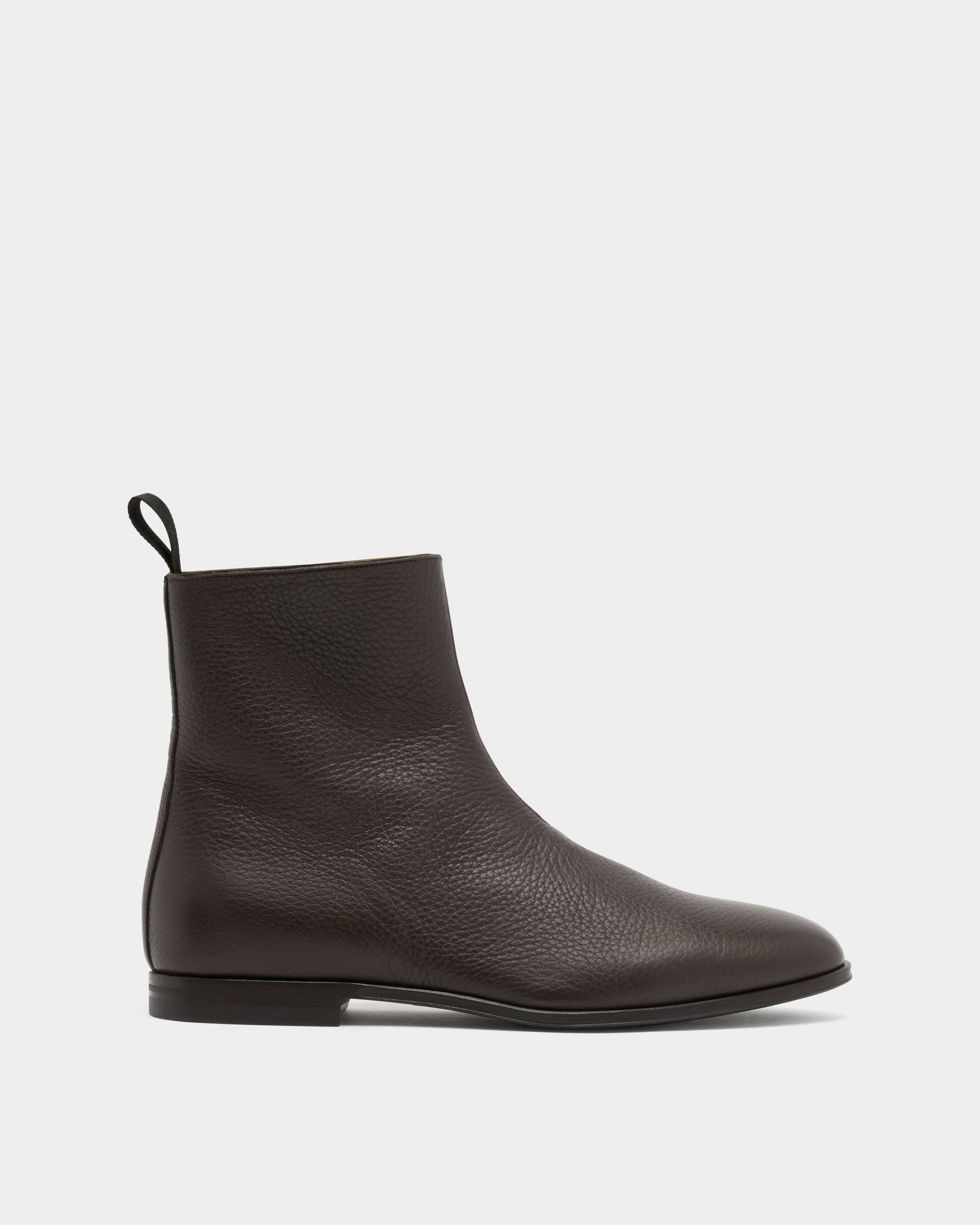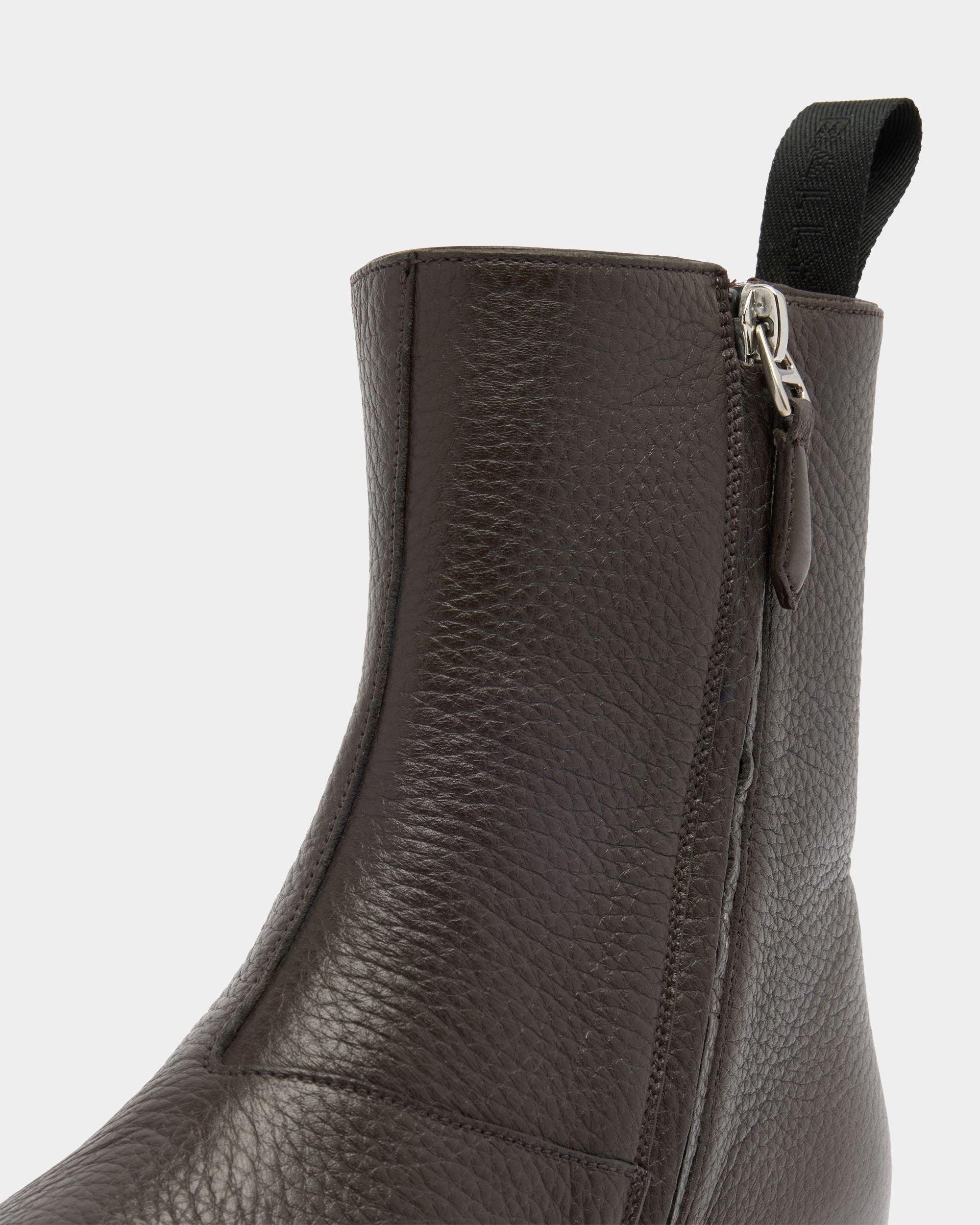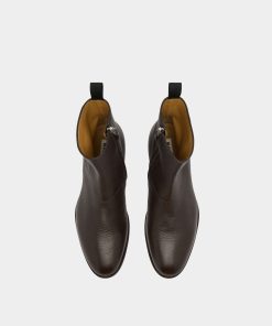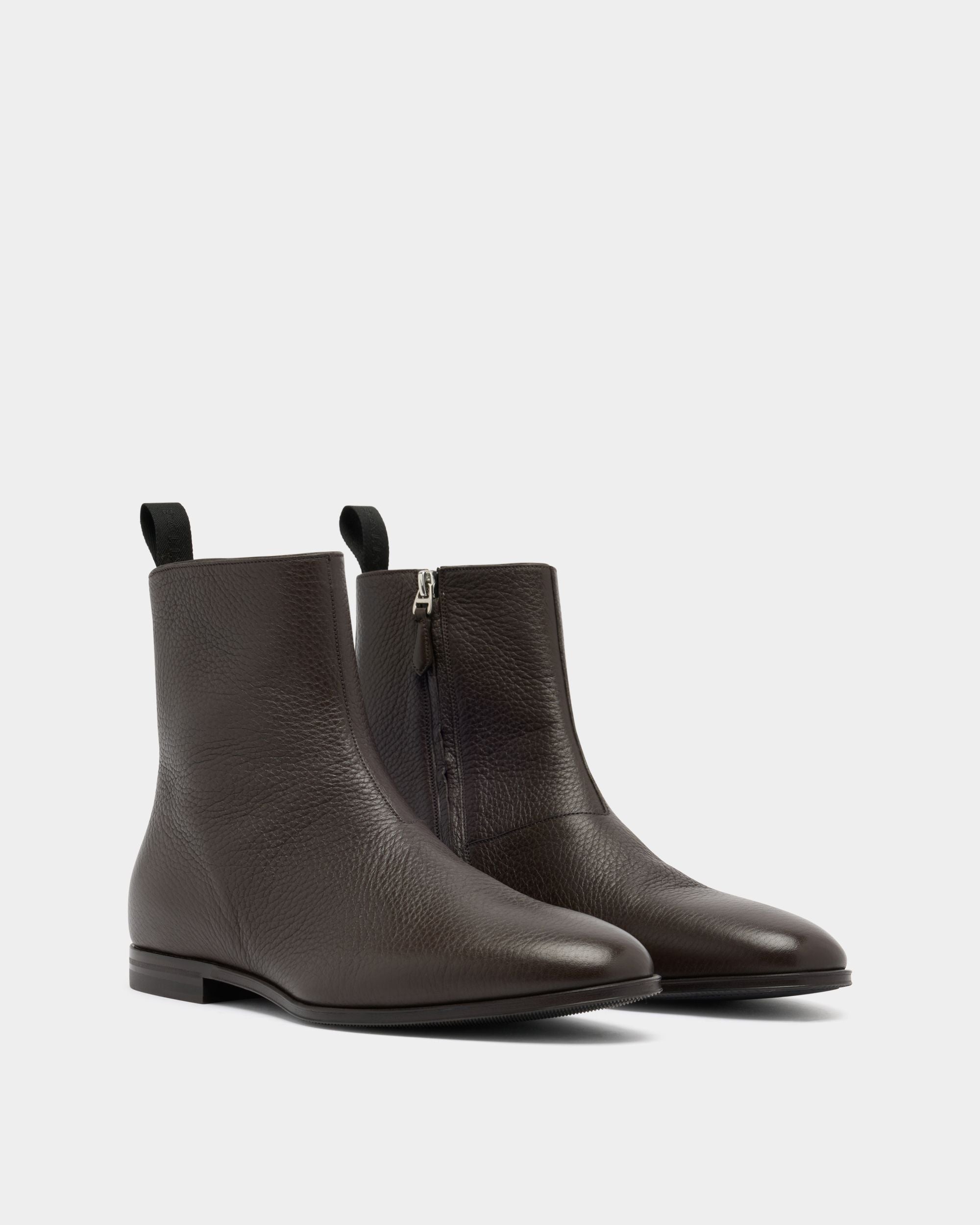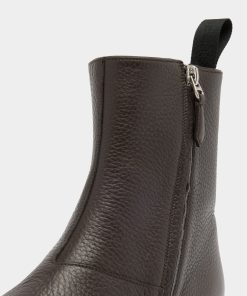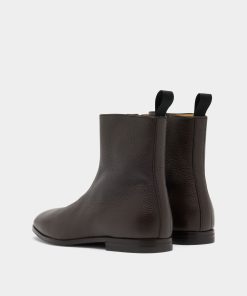 An essential silhouette defines this Westminster boot in Ebano grained deer leather. The upper is sleek, with seams kept to a minimum, and embellished by a simple strip of leather and a pull loop at the back. A zipper is concealed on the inner ankle, for easy slip on and off.