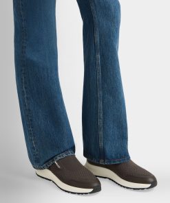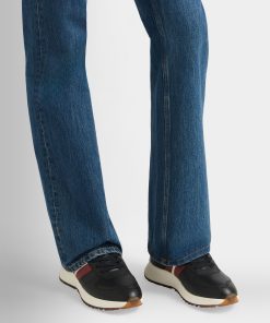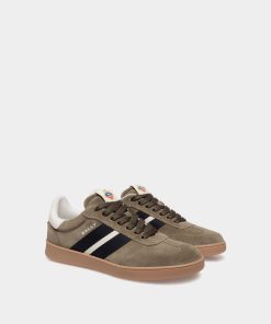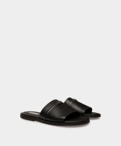 This almond-toe Westminster loafer in black deer leather is characterized by a grained finish, tonal stitching and a saddle strap across the top, embellished with a metal Bally B detail.