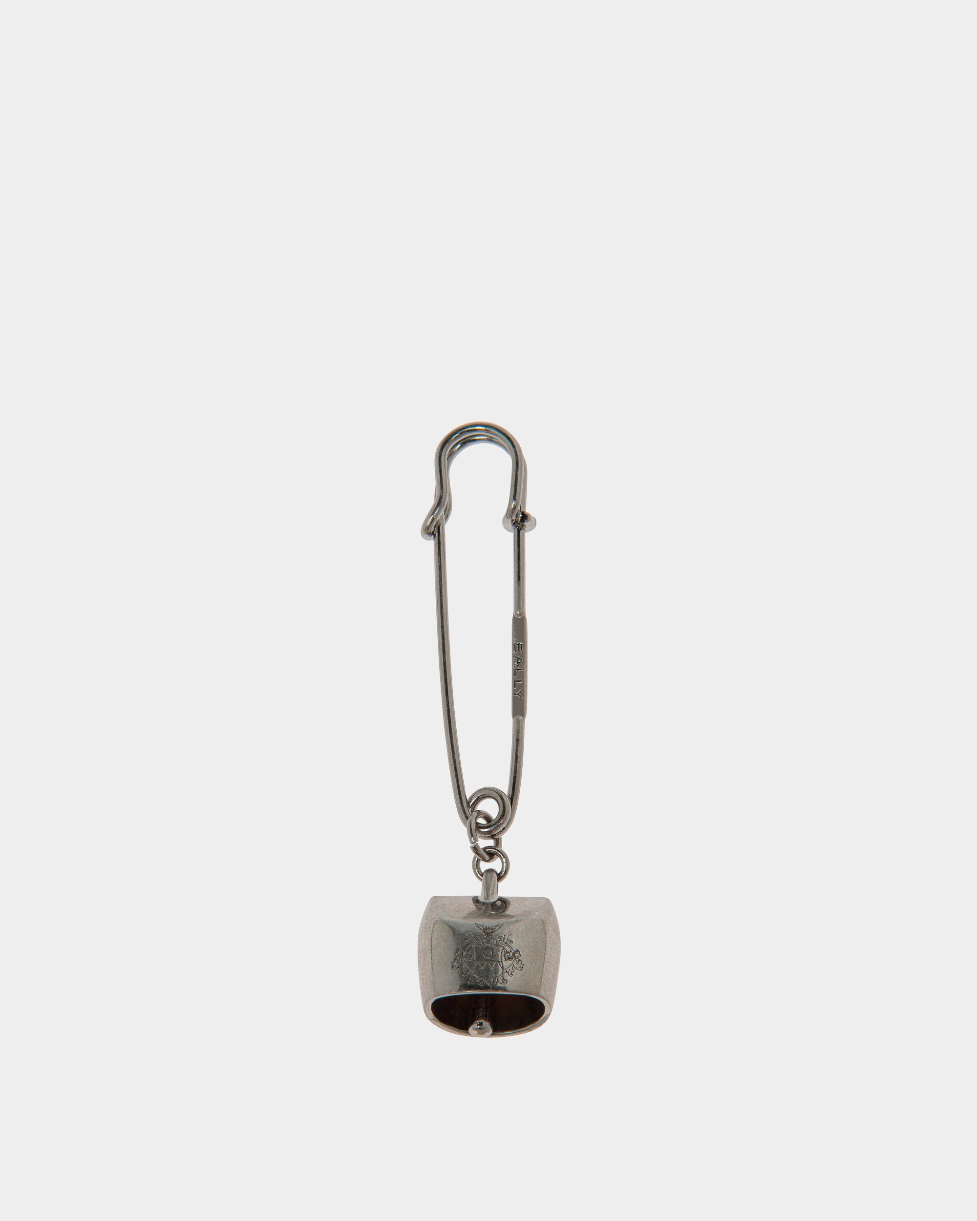 The Belle Safety Pin is made of silver-tone eco brass, giving rise to a sustainable fashion accessory. It brings the pastoral lore of Switzerland into the contemporary era. A small Bally crest is engraved on the front of the charm.