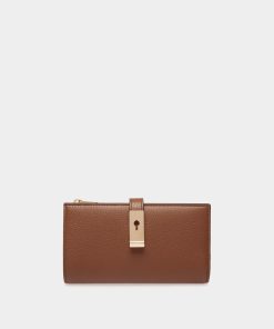 Bally Women’s Lock Me Long Wallet In Brown Grained Leather | Brown