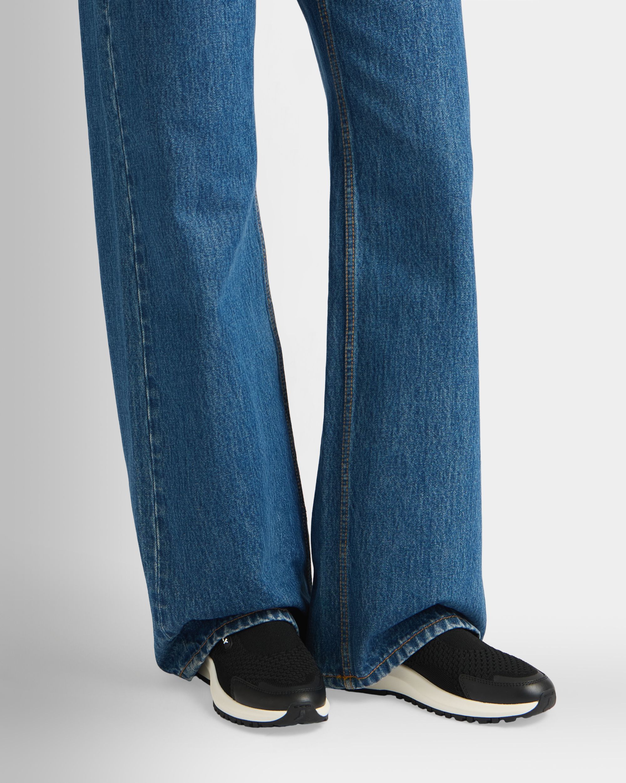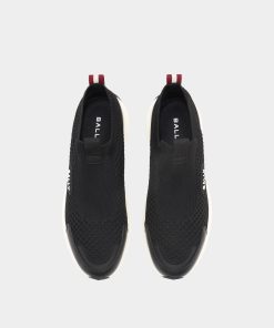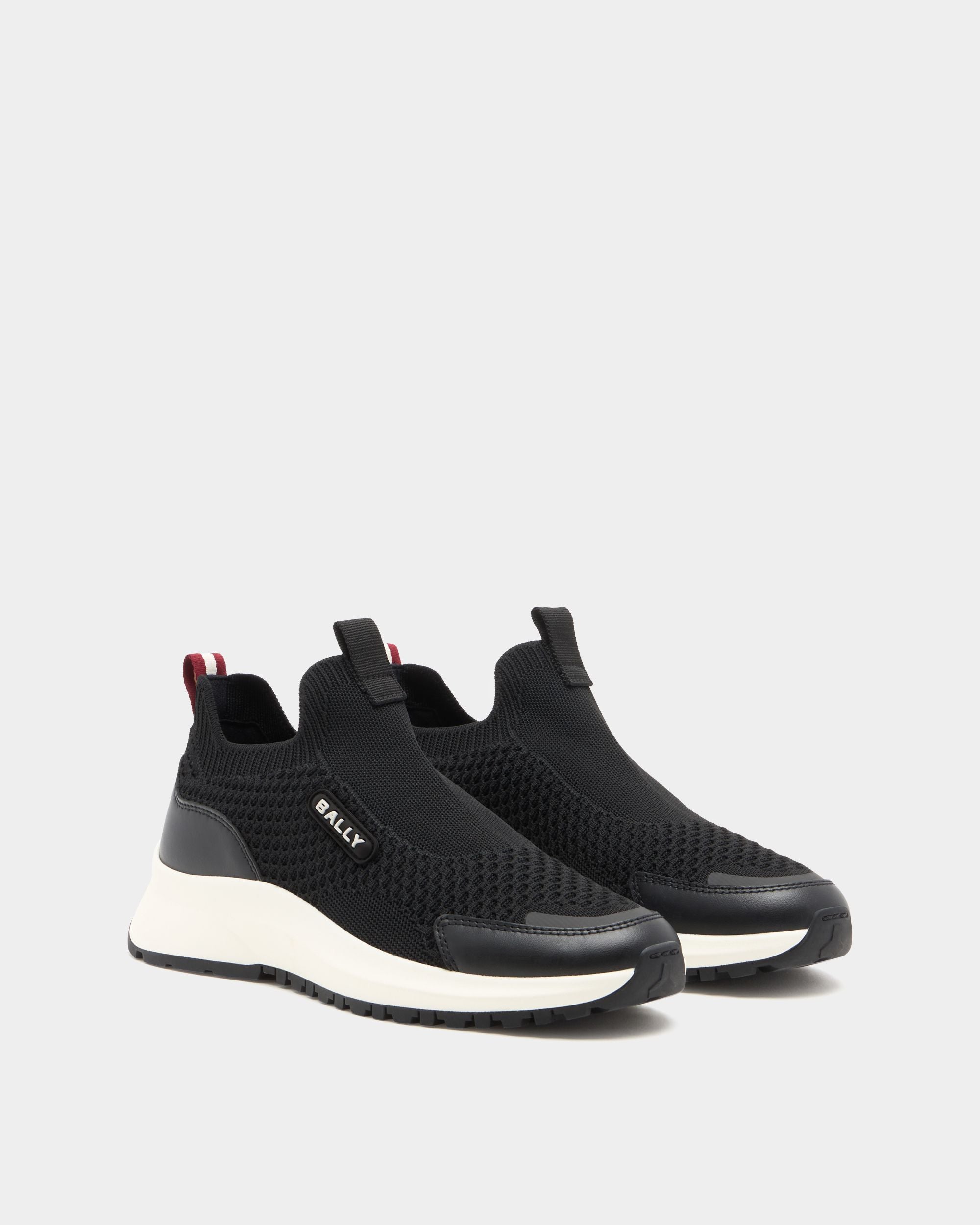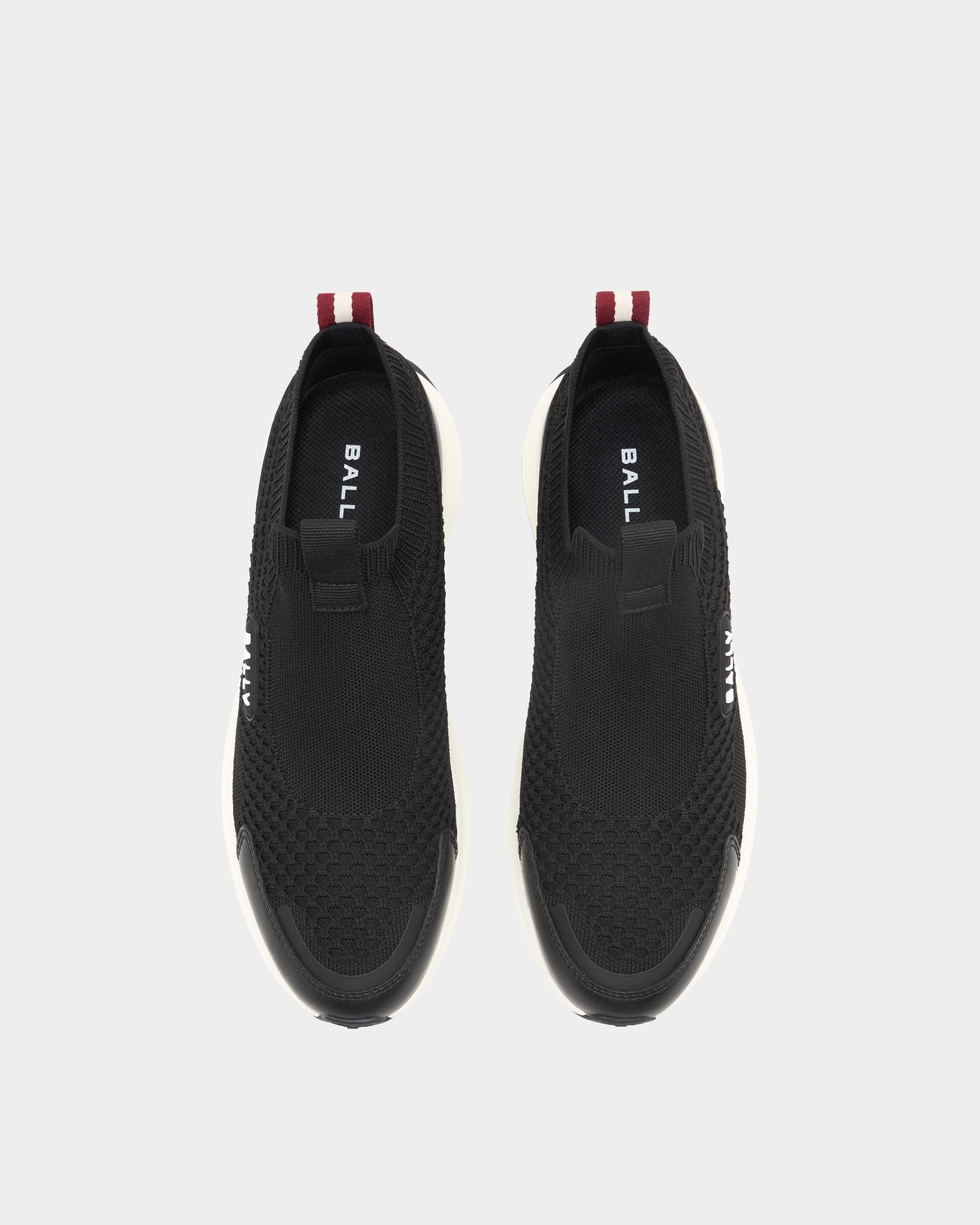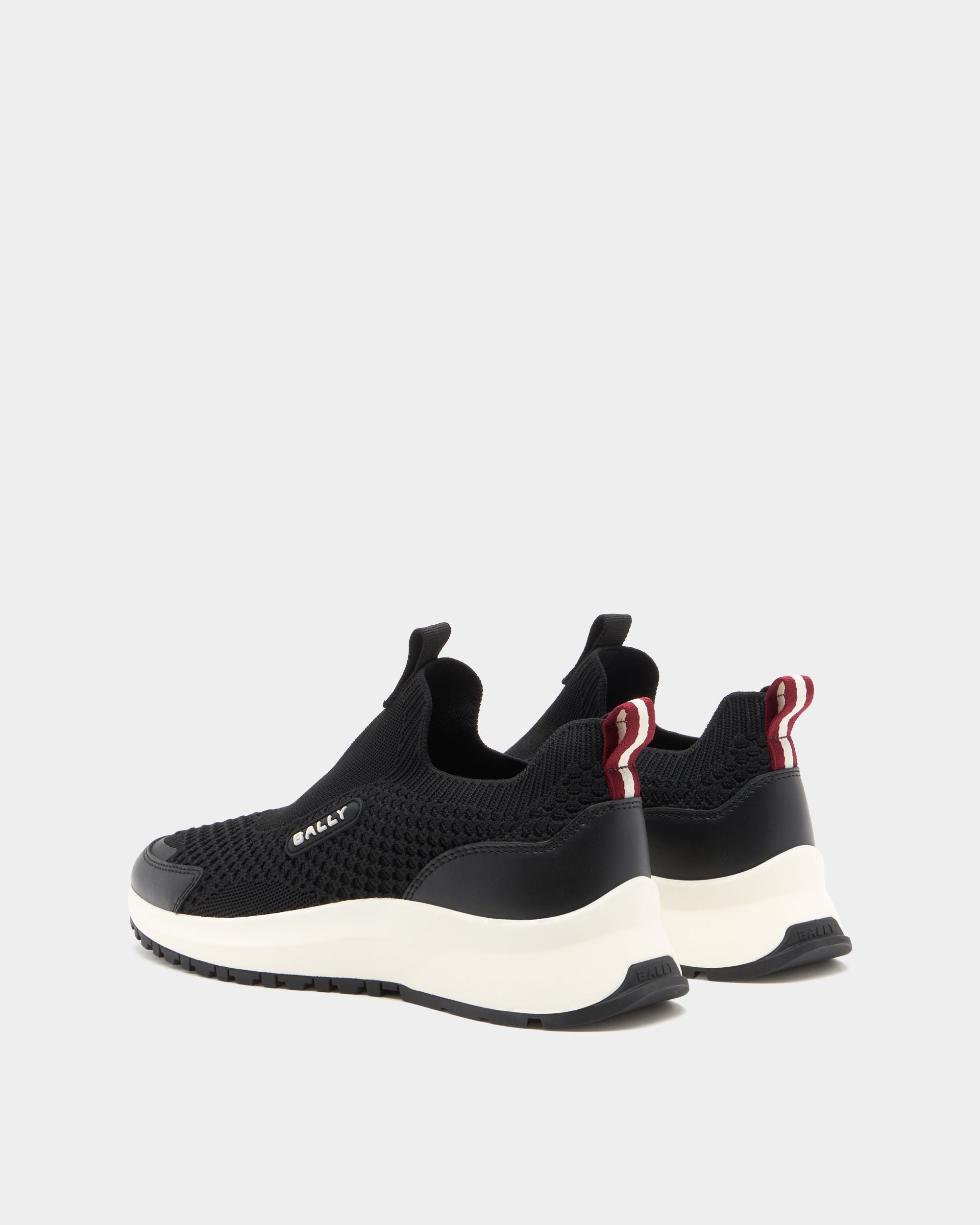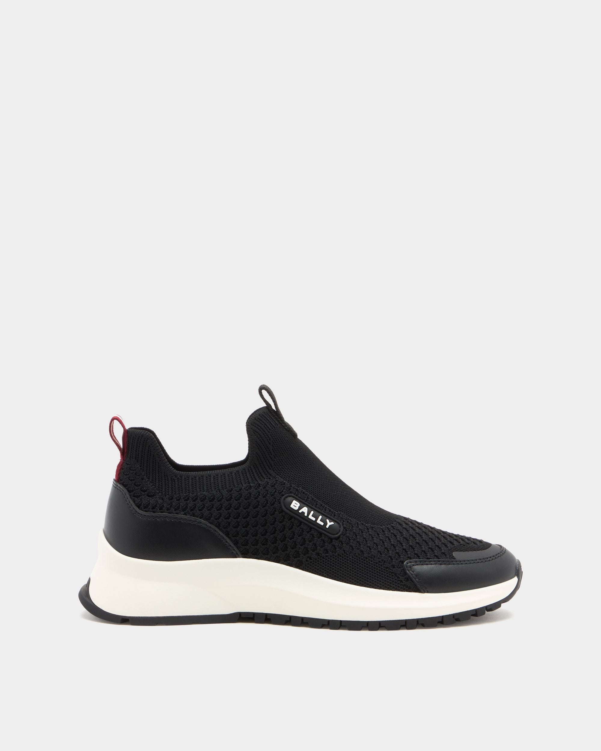Clean and modern, this Outline sneaker features a pull-on black knit fabric upper and a thick rubber sole with a flexible, high-grip outsole. Bally Ribbon pull tab at the back.