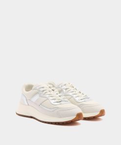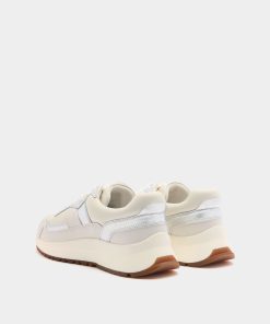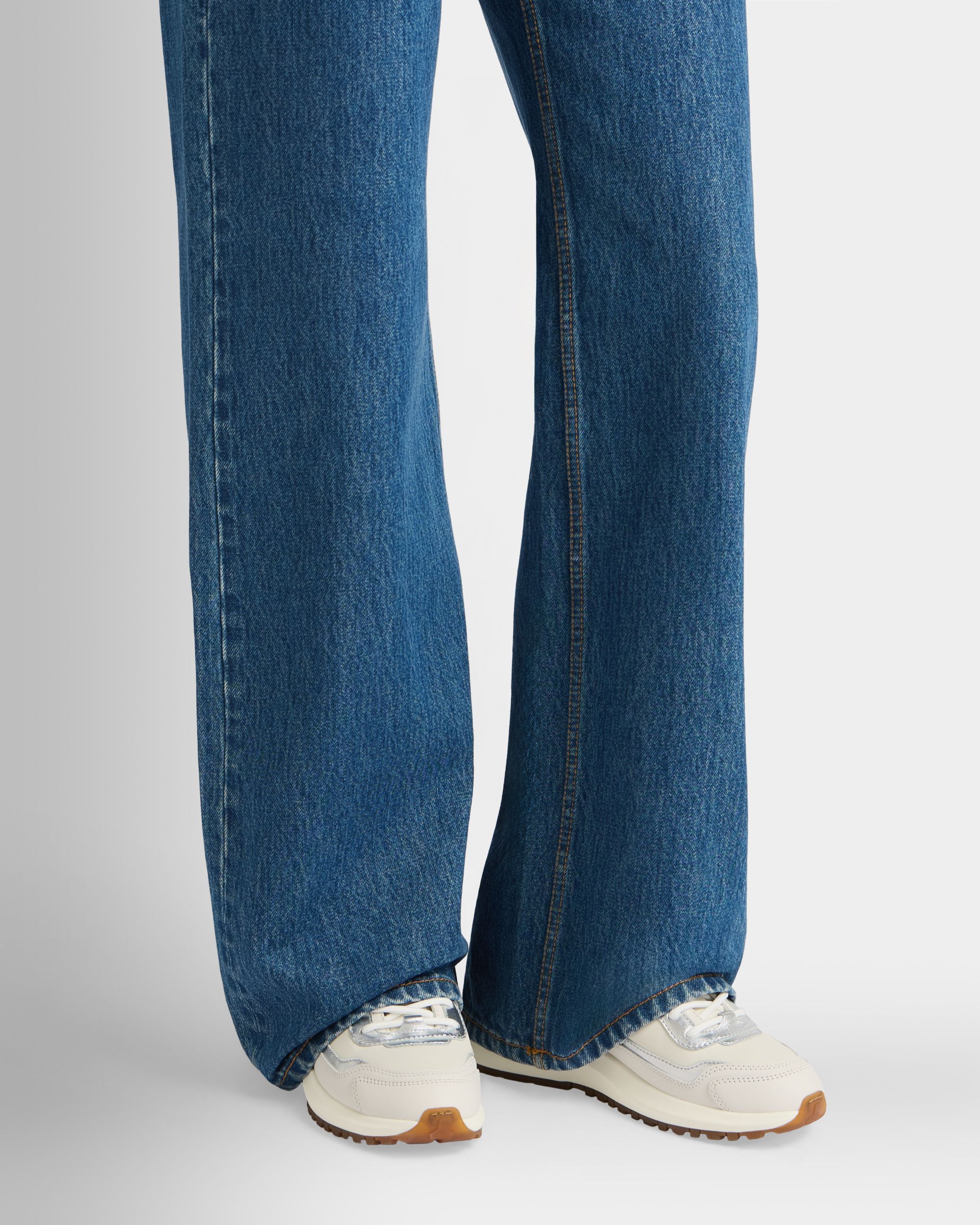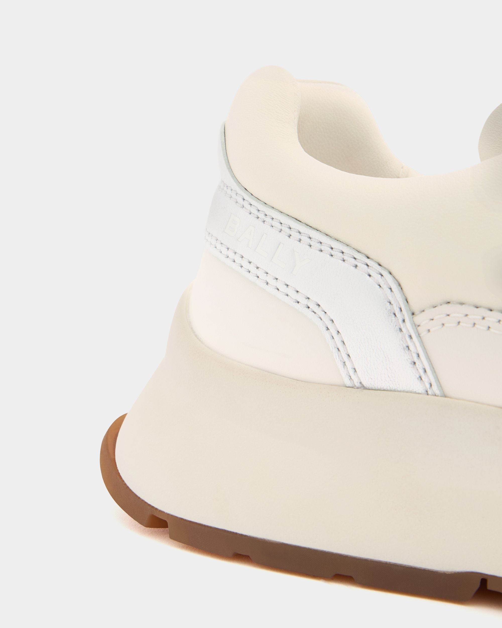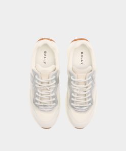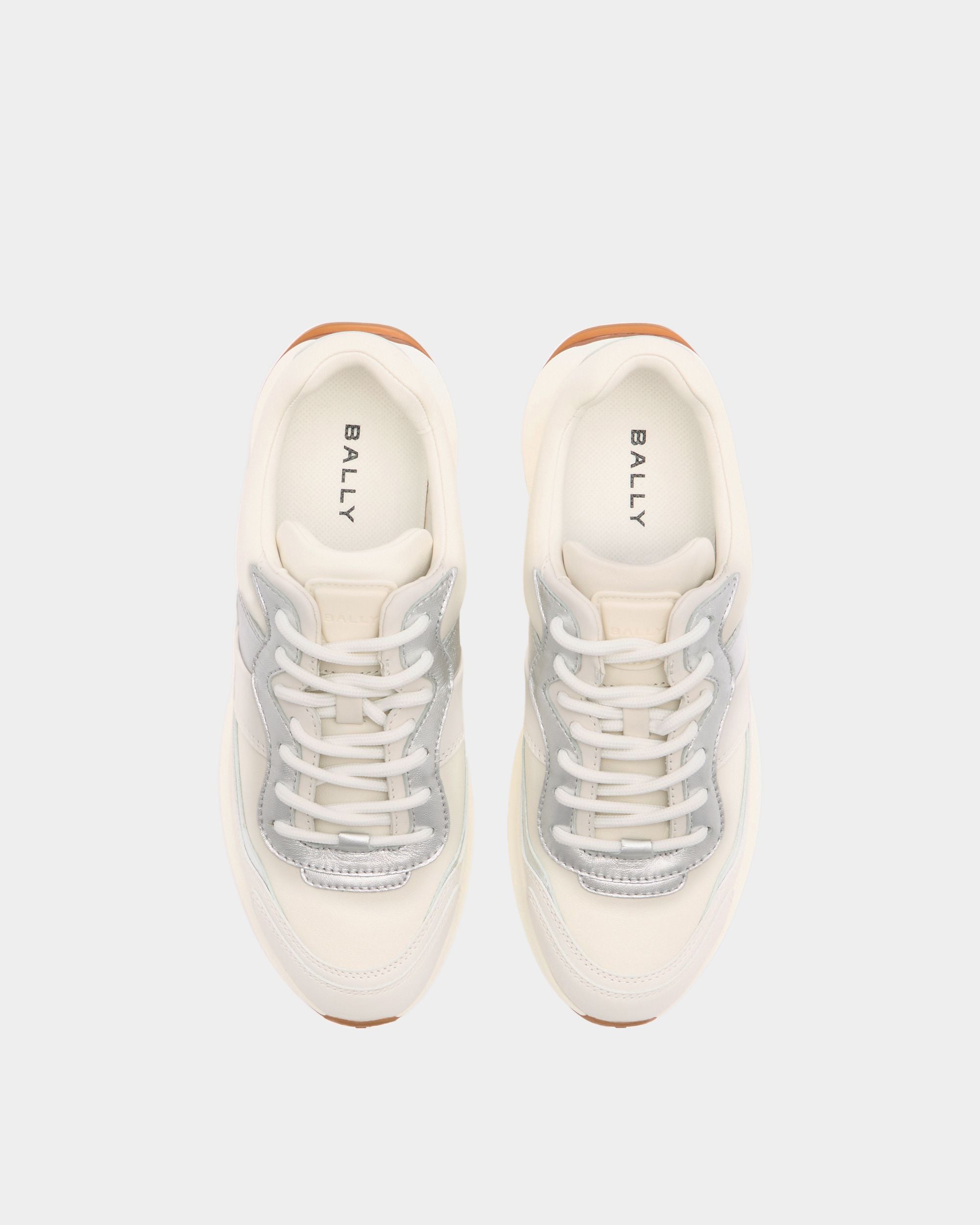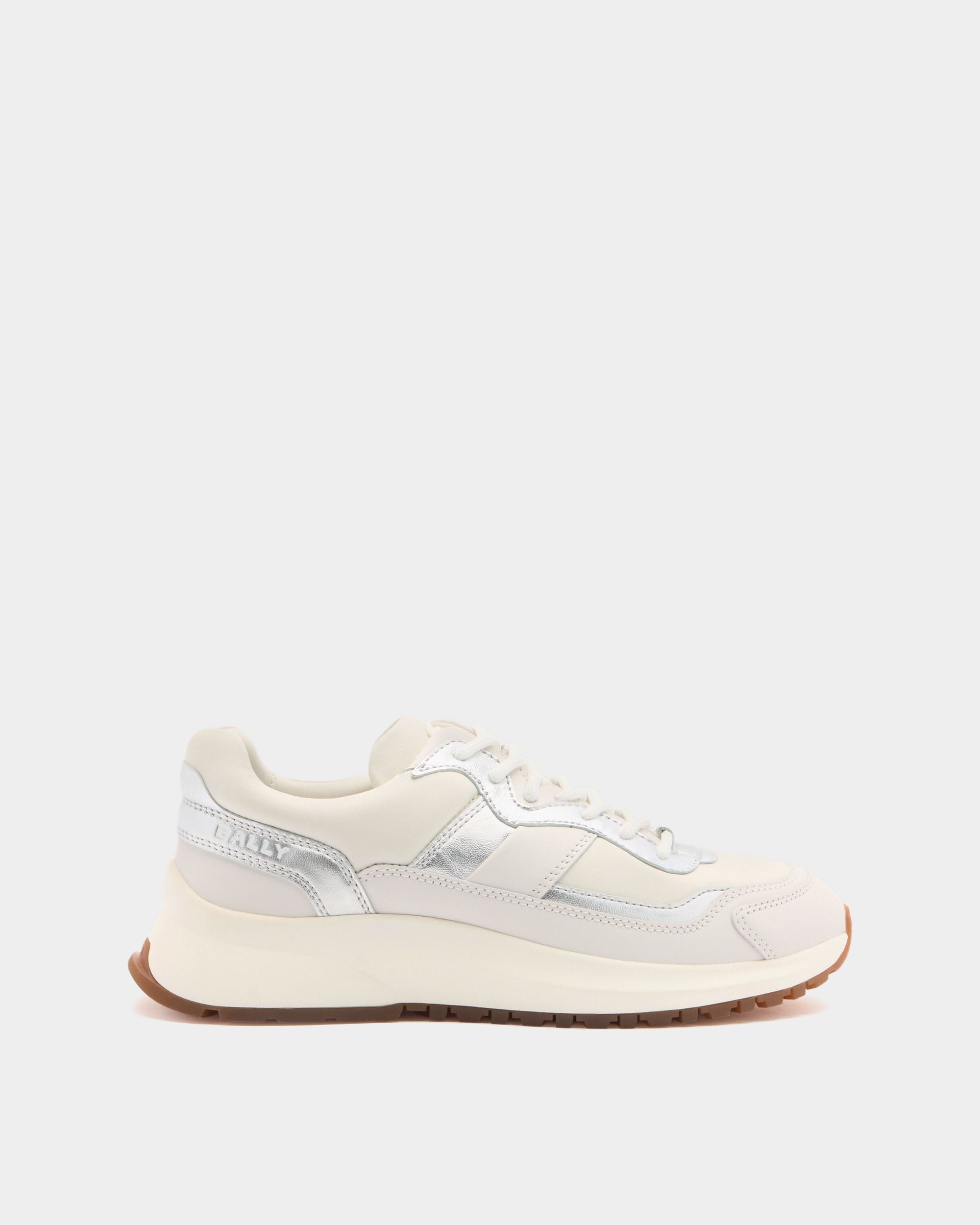 From the Outline family, this white leather sneaker enriches a contemporary Bally design with shimmering silver leatherwork.
