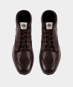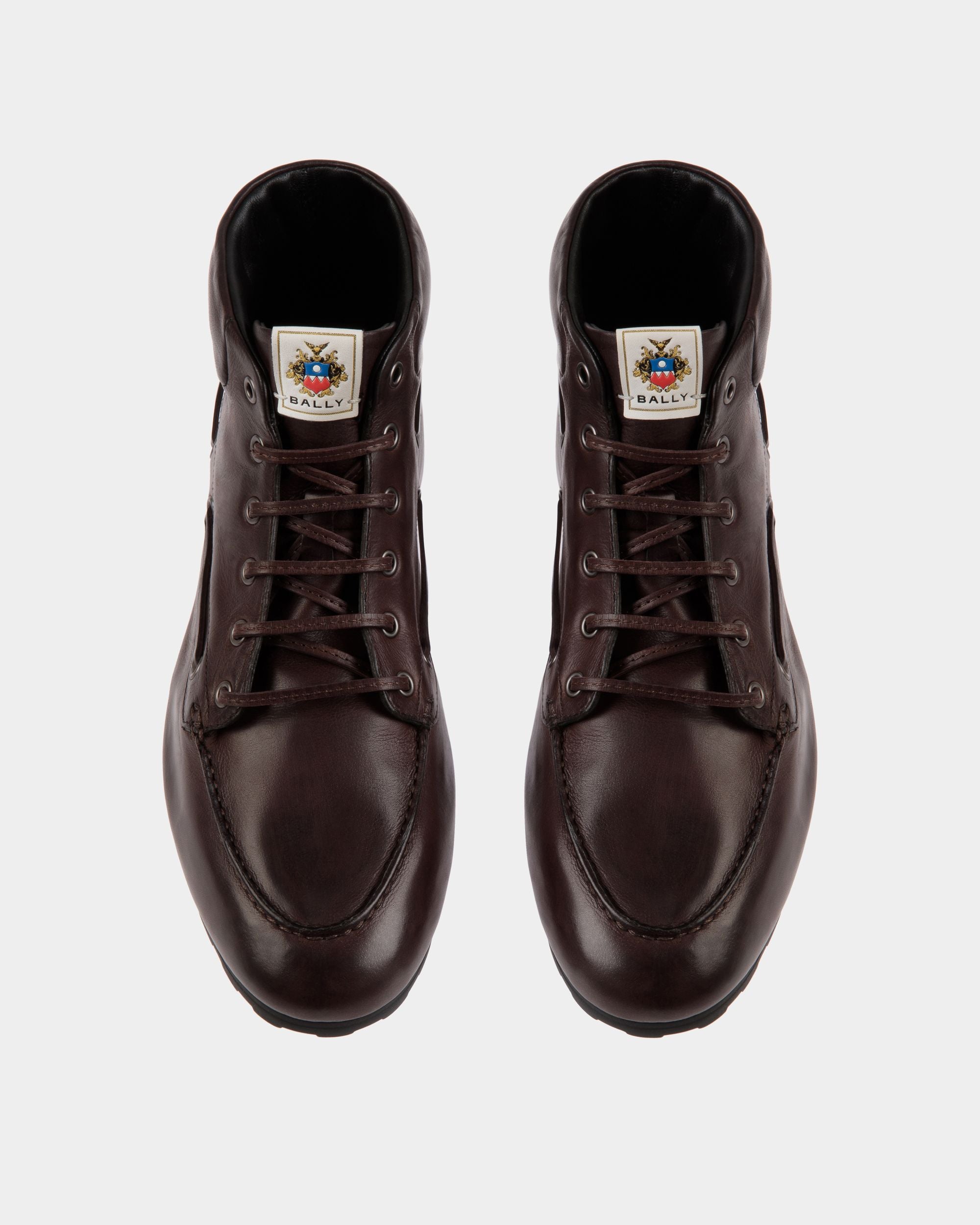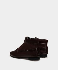 Seen in key looks on the FW24 Bally runway, this Plume bootie in Ebano buffalo leather is a reinterpretation of a boat shoe, giving it the silhouette of an ankle boot. The upper is combined with a rubber sole via reverse Goodyear construction, a hand-worked method that delivers exceptional flexibility and lightness.