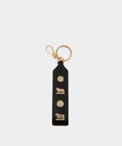 Bally Women’s Swissness Keychain With Studs In Black Leather | Black