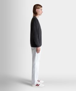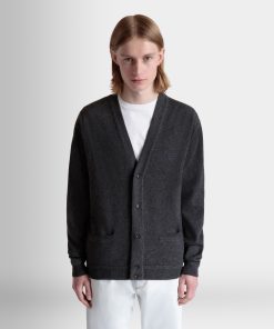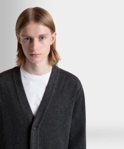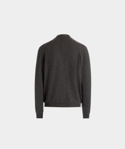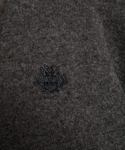 This dark grey cardigan is knitted in fine cashmere and trimmed by Bally Crest embroidery. Horn-effect resin buttons and two pockets finish the front.