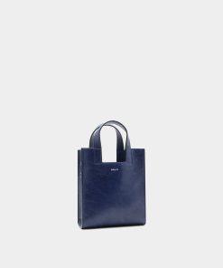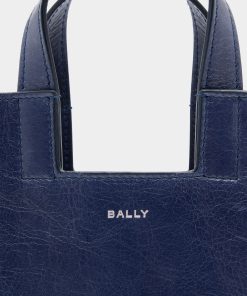 Women’s Easy Bally Small Tote Bag In Navy Blue Leather | Blue