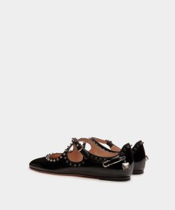 Bring a touch of chic attitude to your wardrobe with this Mary-Jane-inspired Ballyrina flat, here in fine black calfskin. Cool silver-tone metal details fuse with Bally heritage, expressed through impeccable craftsmanship.